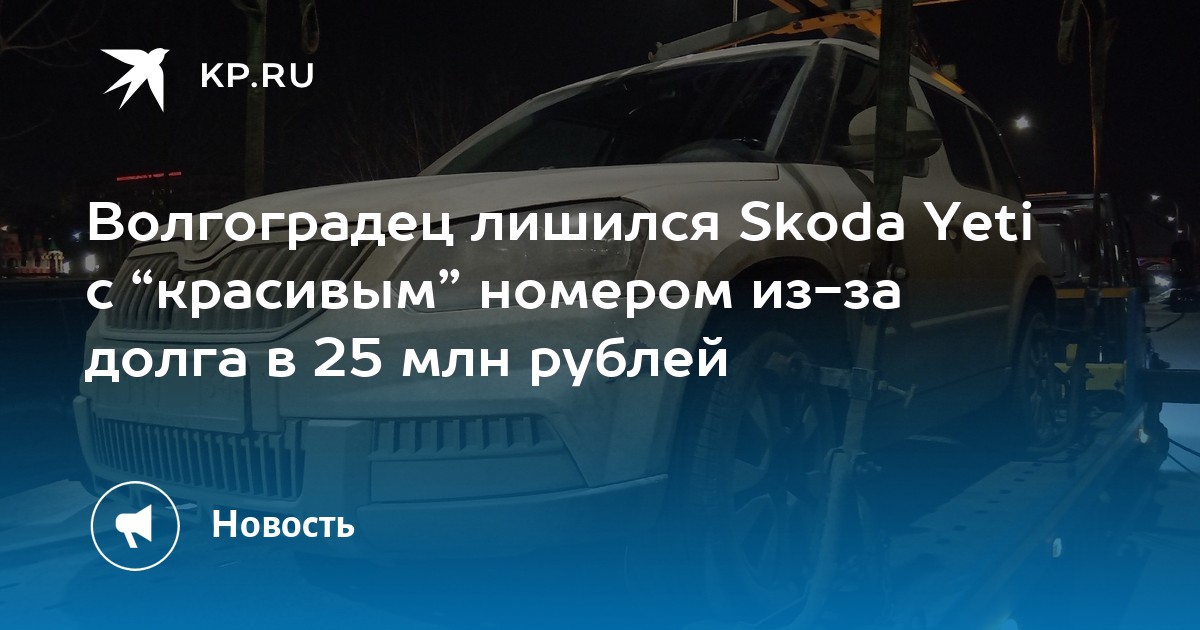 В Волгоградской области житель Городищенского района остался без своего автомобиля Skoda Yeti, который имел приметный номер с тремя единицами. Причина – огромный долг в 25 миллионов рублей, сообщает сайт volgograd.kp.ru с ссылкой на УФССП по региону.